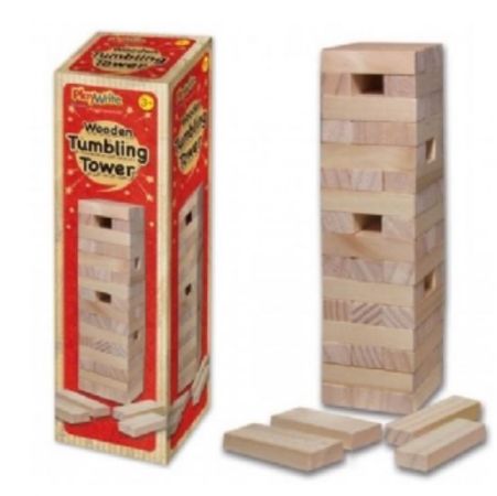 16cm Wrapped Wooden Tumbling Tower Family Game AGE 9+
