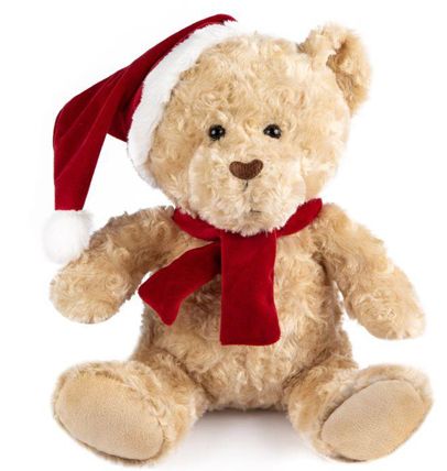 Beautifully soft and cuddly sitting Christmas bear with hat ...